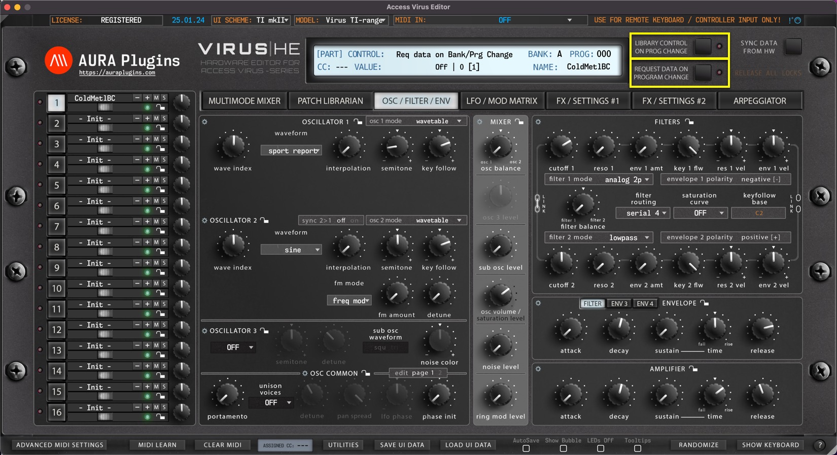 TIP: Turn off Request Data On Program Change and Library Control On Prog Change to quickly browse through the hardware presets. Once you hit a sound you want to work on, click Sync Data from HW button to request the data to the Editor user interface and work it from there!