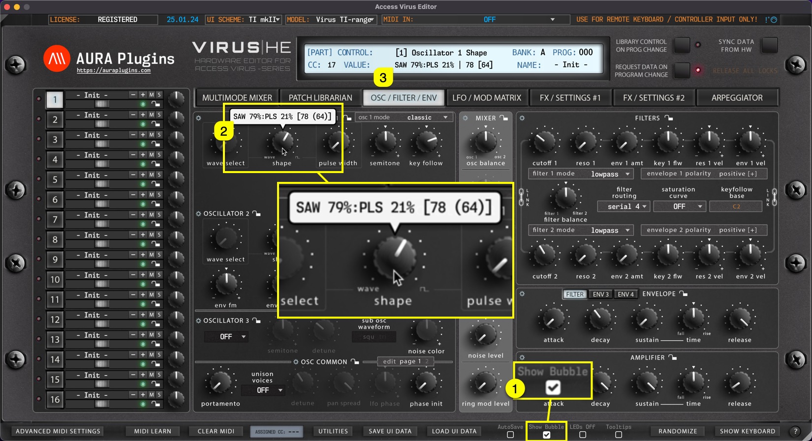Access Virus Editor – How To Use Show Bubble Function