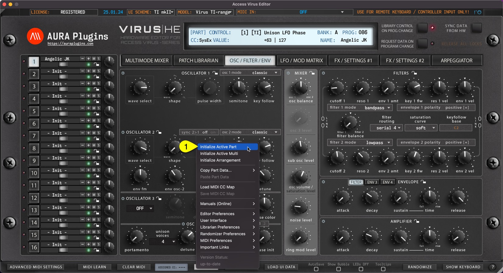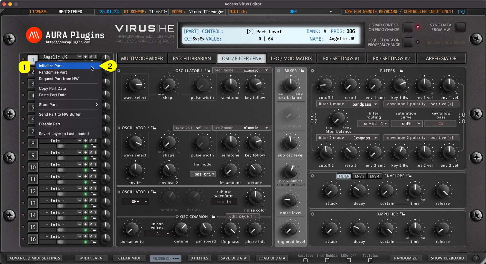 You can Initialize Active Part by clicking Utilities Menu [1] and then Initialize Active Part [2]. This function will initialize which ever Part you have active at the moment.