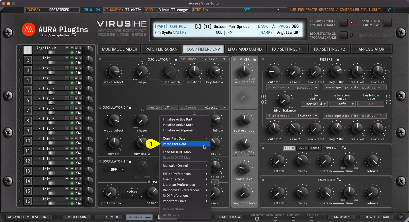 Access Virus Editor – Paste Layer Data