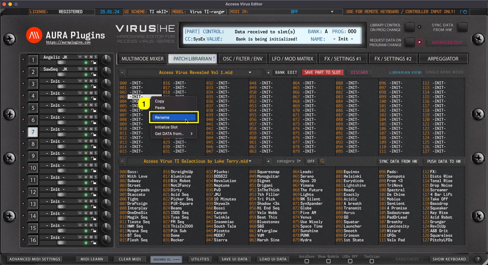 This will open a small window, where you have to click on the slot name [1]Â to activate renaming. Keep in mind that name length is defined by the hardware specifications, in this case: 10 characters