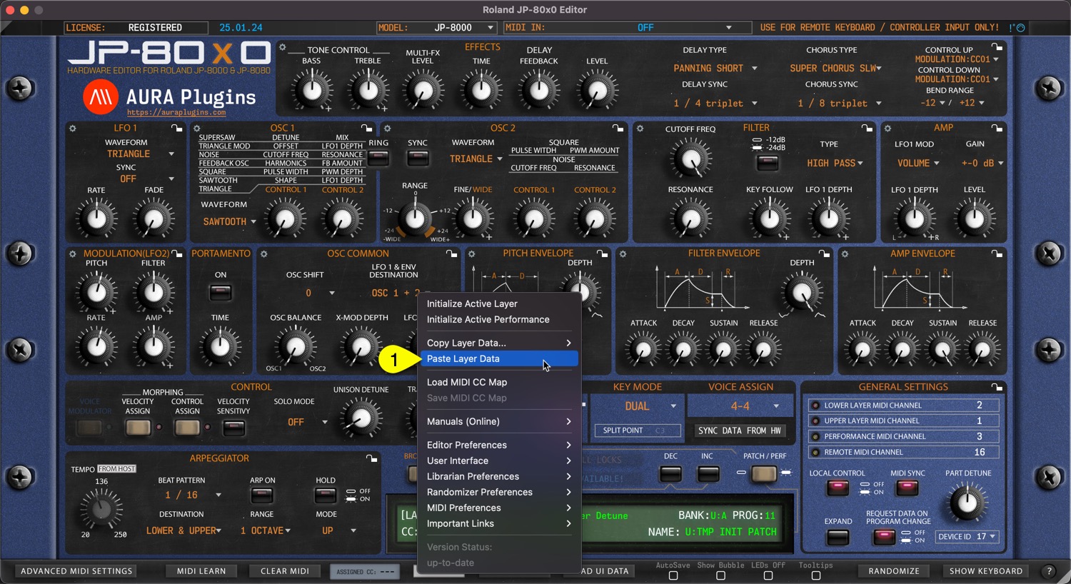 You can paste currently copied Layer data from the clipboard. Open Utilities Menu and select Paste Layer Data… [1].