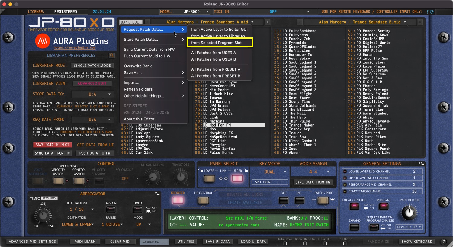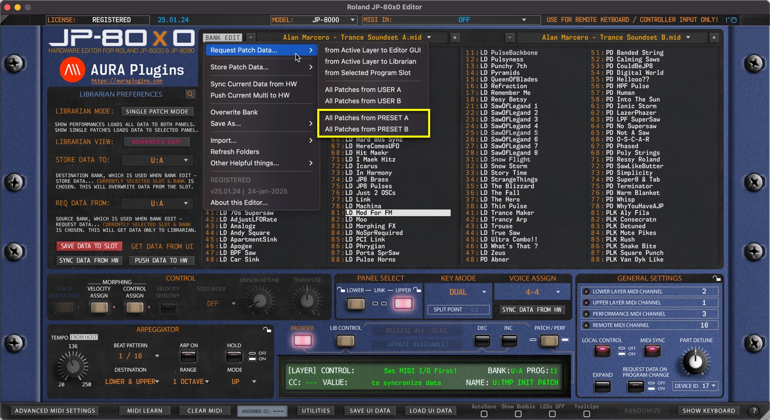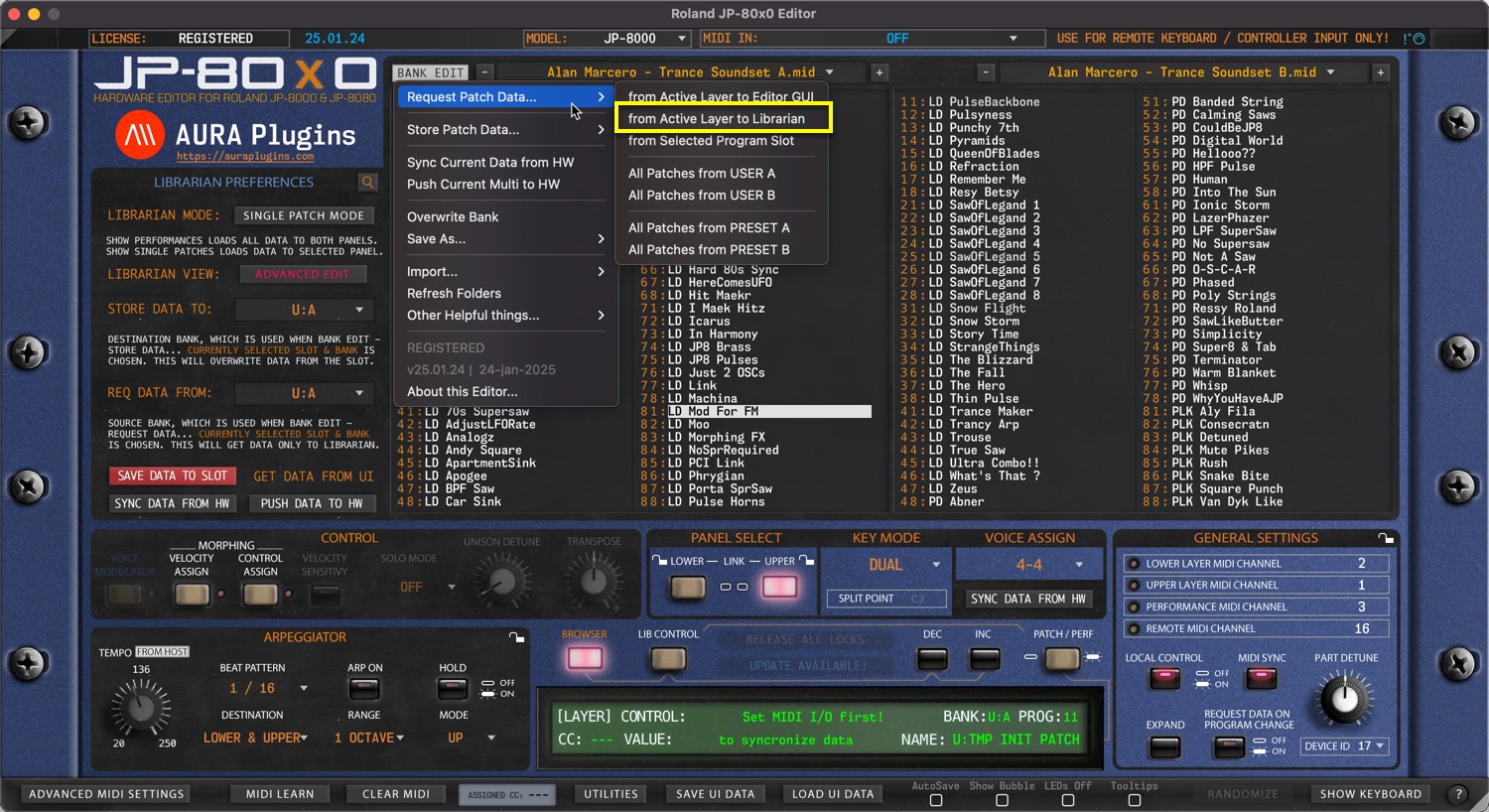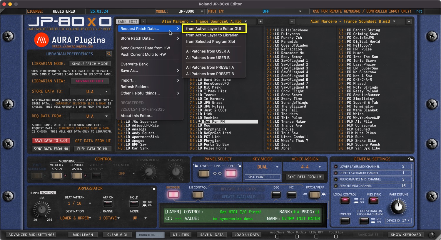 Roland JP-80×0 Editor – Request Patch Data from Hardware
