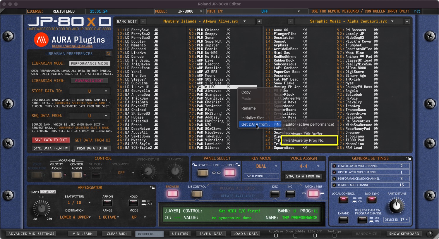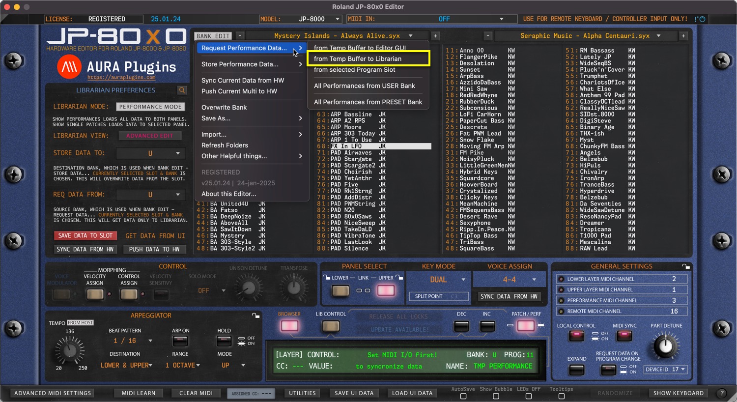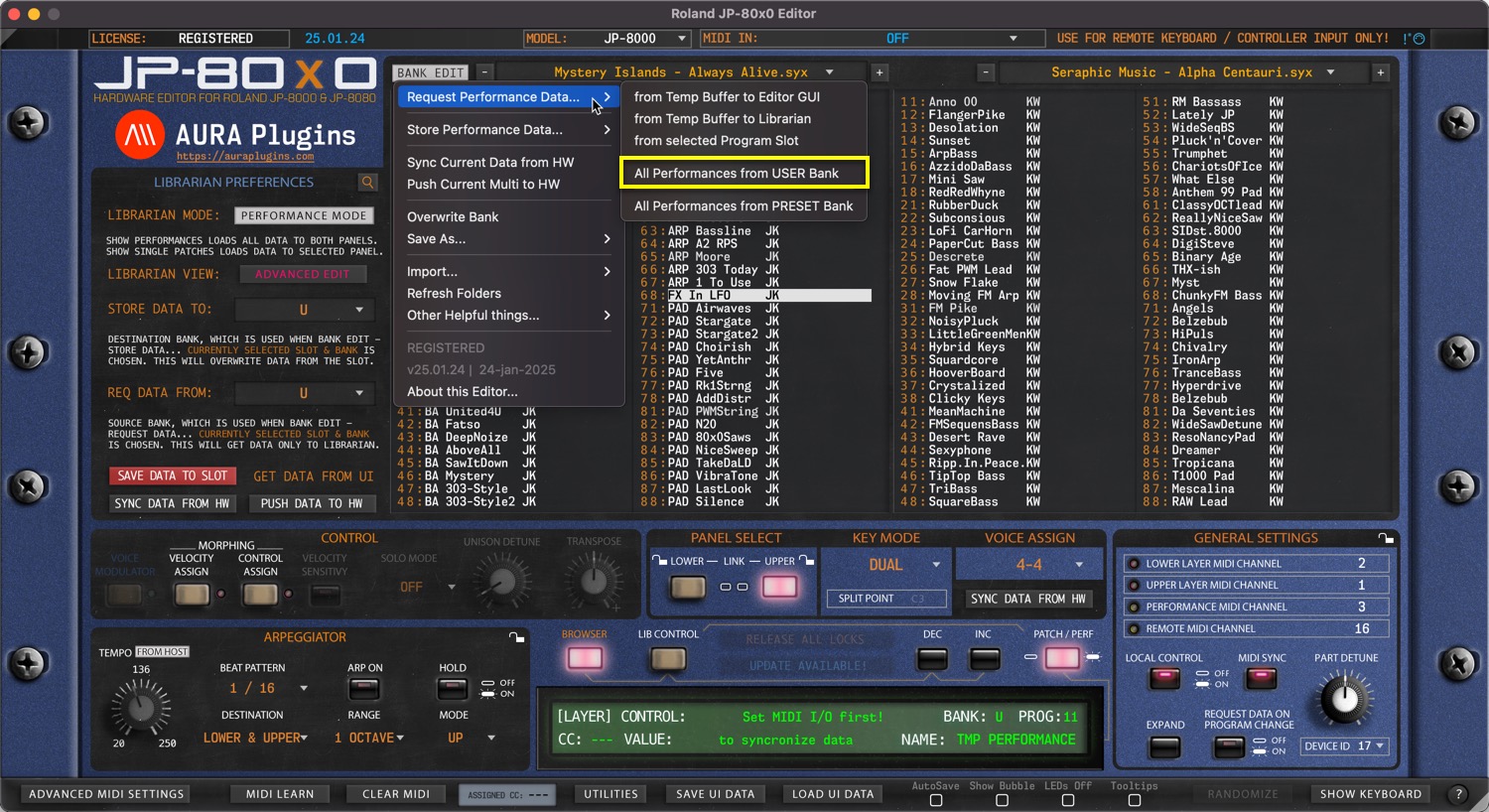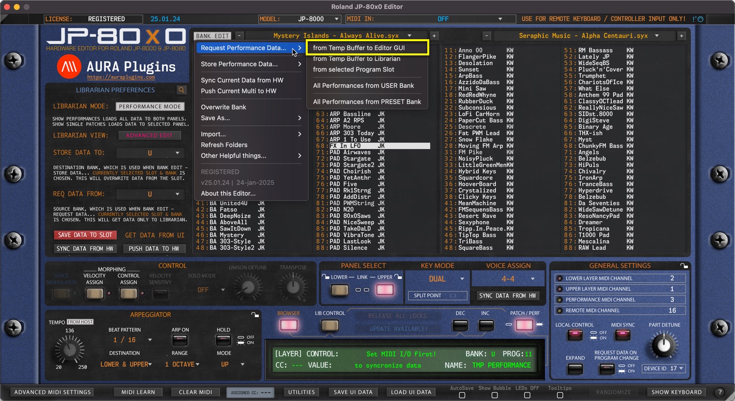 Roland JP-80×0 Editor – Request Performance Data from Hardware