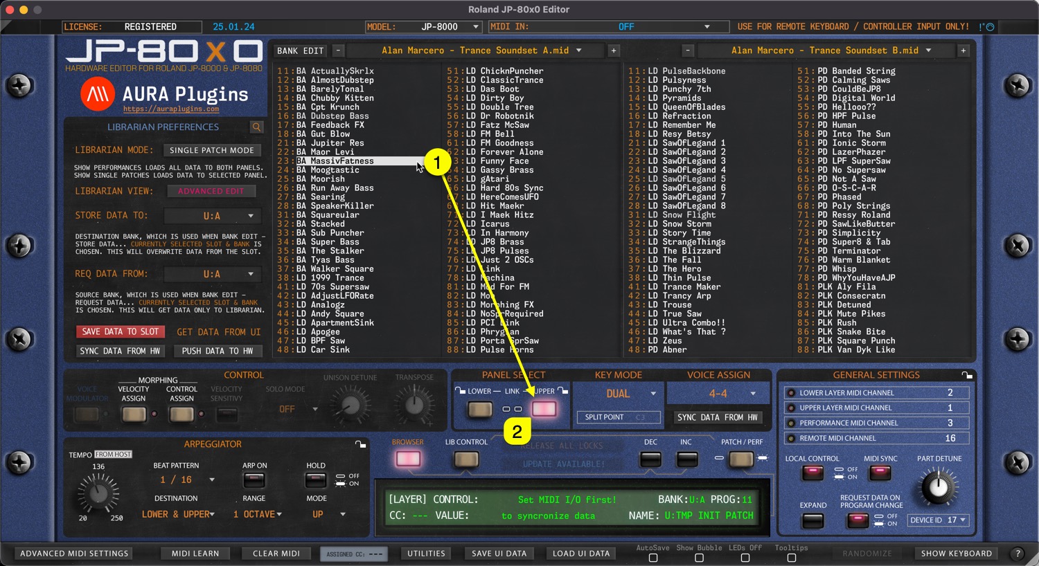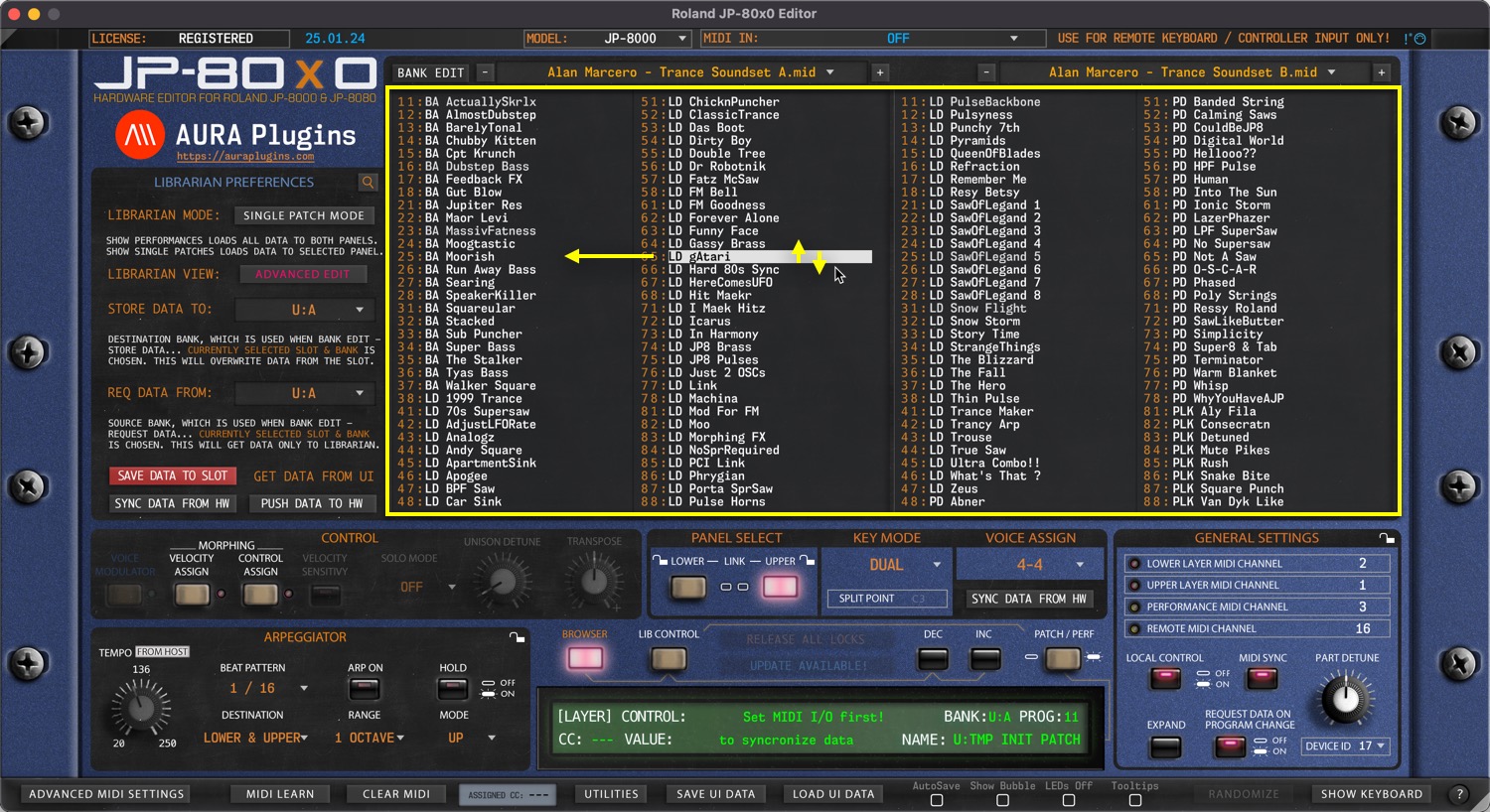 Roland JP-80×0 Editor – Sending Data To Hardware