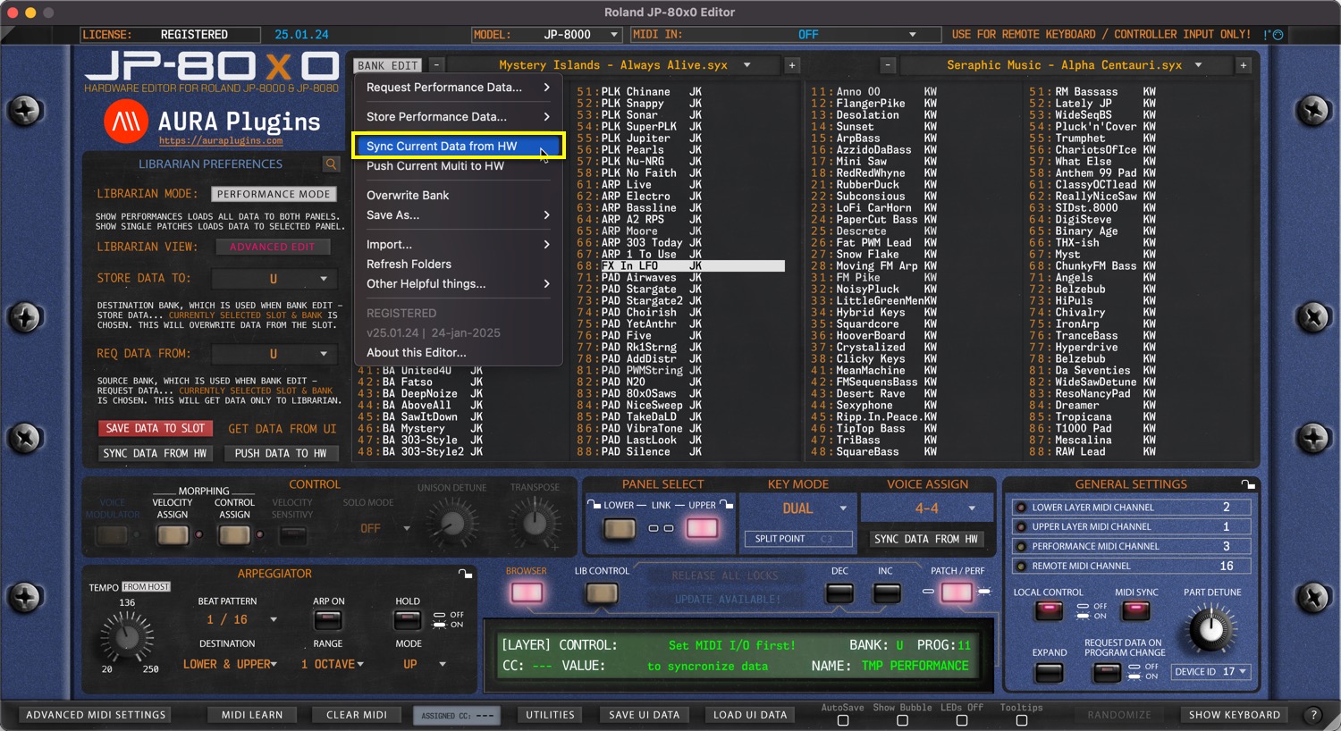 Roland JP-80×0 Editor – Sync Current Data from HW