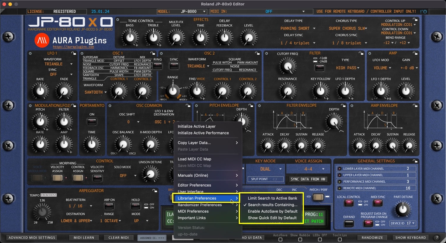Roland JP-80×0 Editor – Utilities: Librarian Preferences