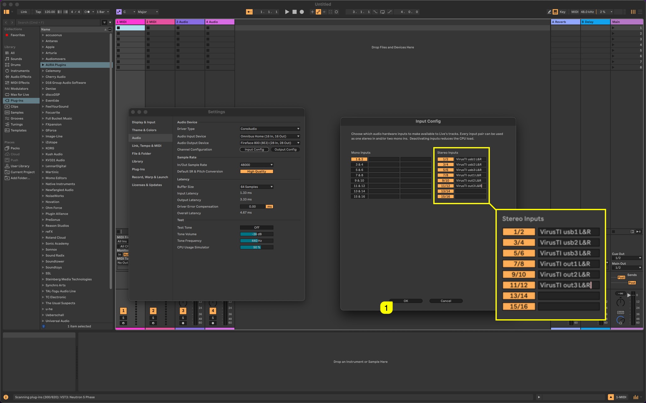 Ableton Live and Virus TI USB Audio with OMNIBUS
