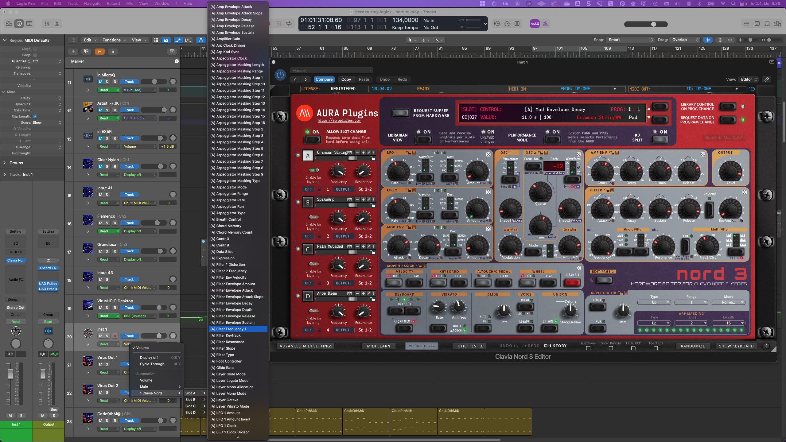 With FULL version of Clavia Nord 3 Editor & Librarian, you can automate almost every parameter right from your DAW without having to remember all of the MIDI CC’s.This can be done easily by setting your DAW automation to Write or Latch mode and then turning the knob from the hardware or the plug-in.