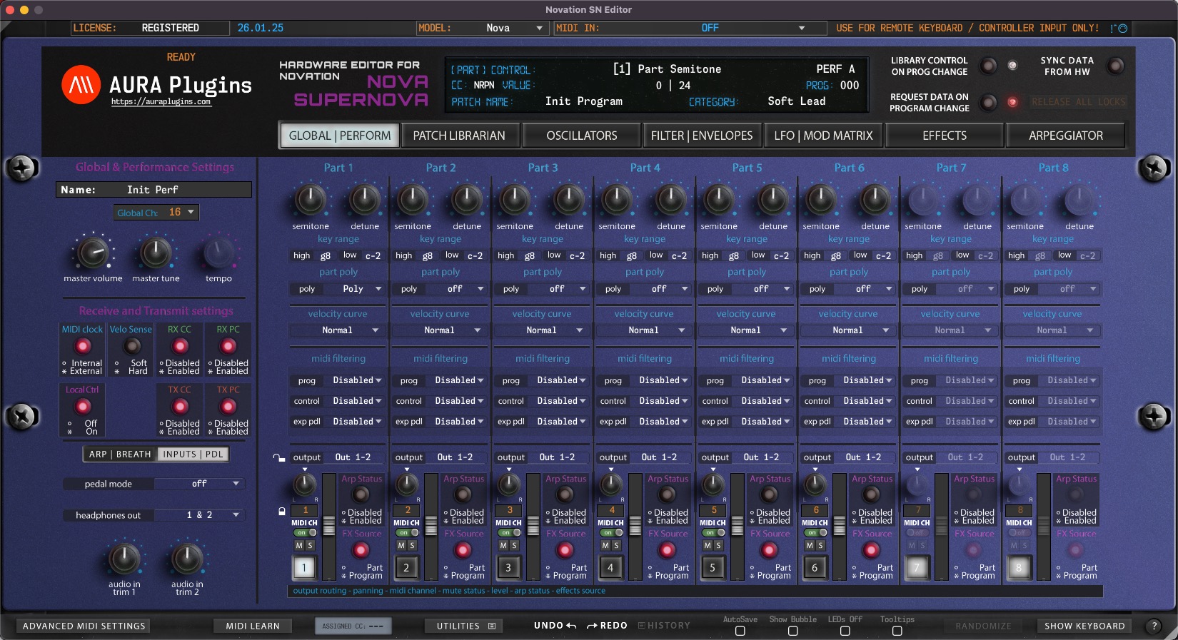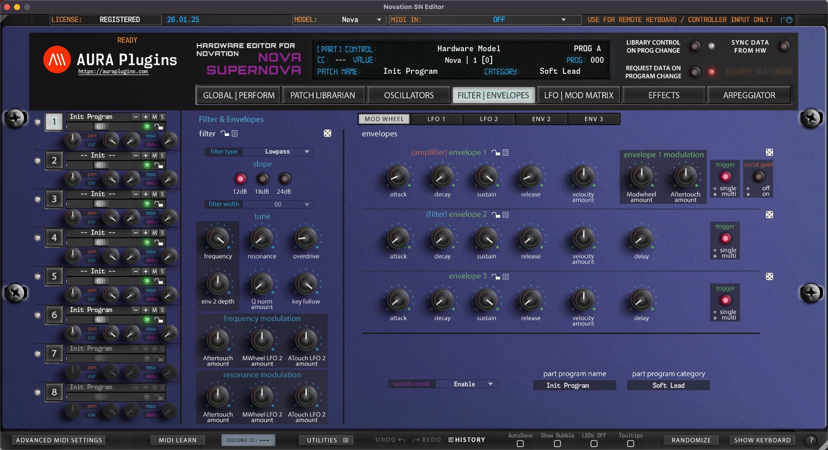 - Control Novation Nova / Supernova synthesizer directly from your DAW.