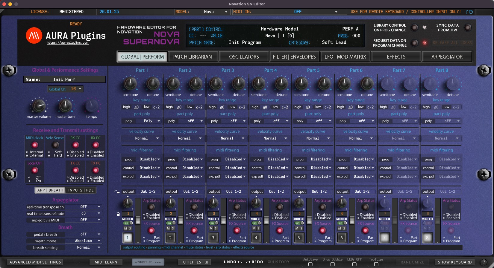 - Control your Novation Nova / Supernova series hardware synthesizer directly from your DAW.