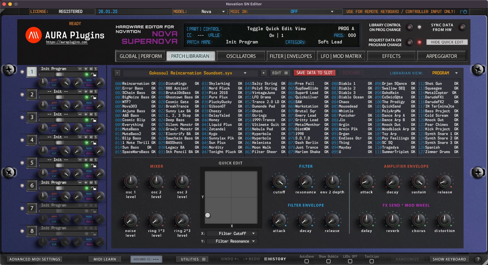 With continuous support and development, Novation SN Editor & Librarian is the best investment for your Novation Nova Desktop or Supernova Rack.