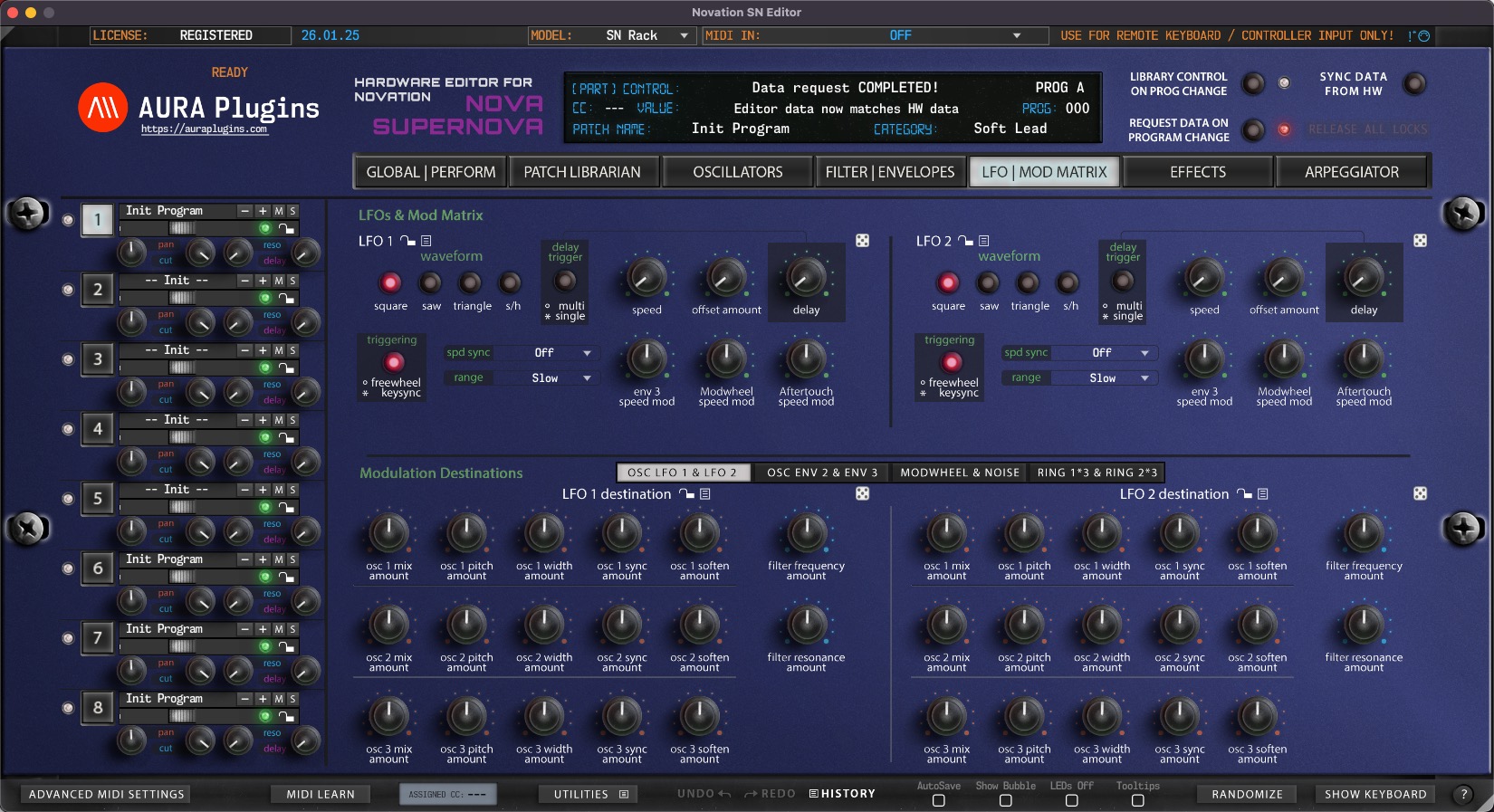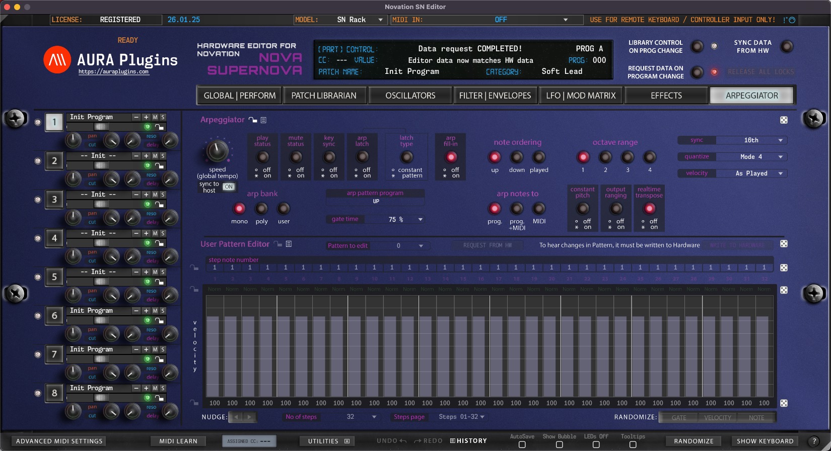Novation SN Editor & Librarian is designed to control 1st generation Novation Nova Desktop or Novation Supernova Rack hardware synthesizers right from your DAW.
