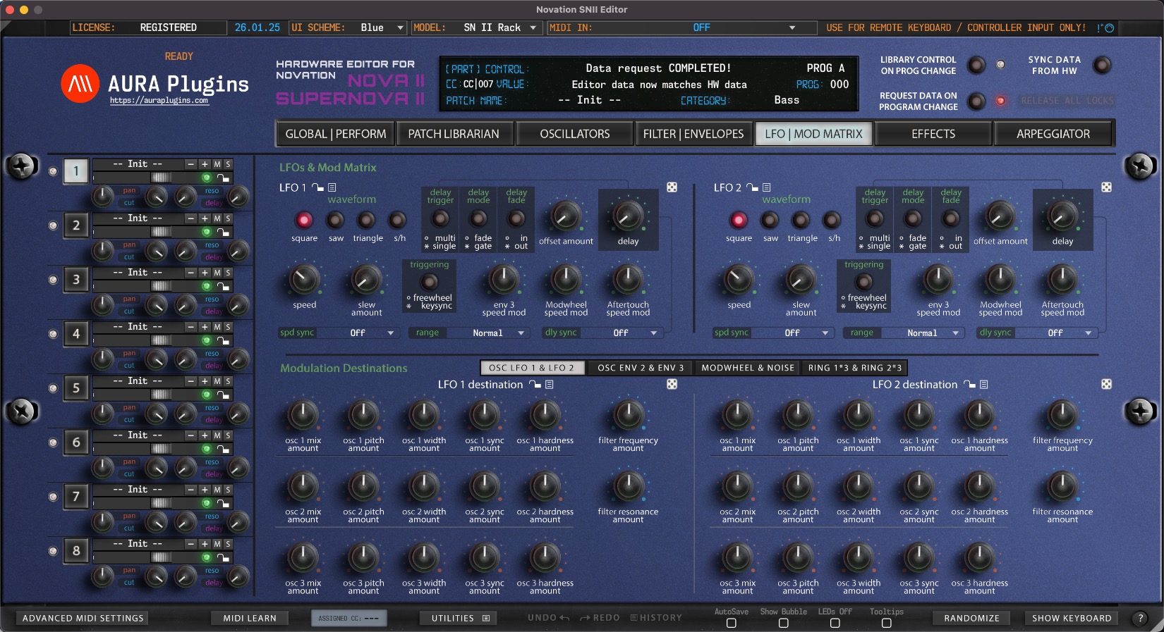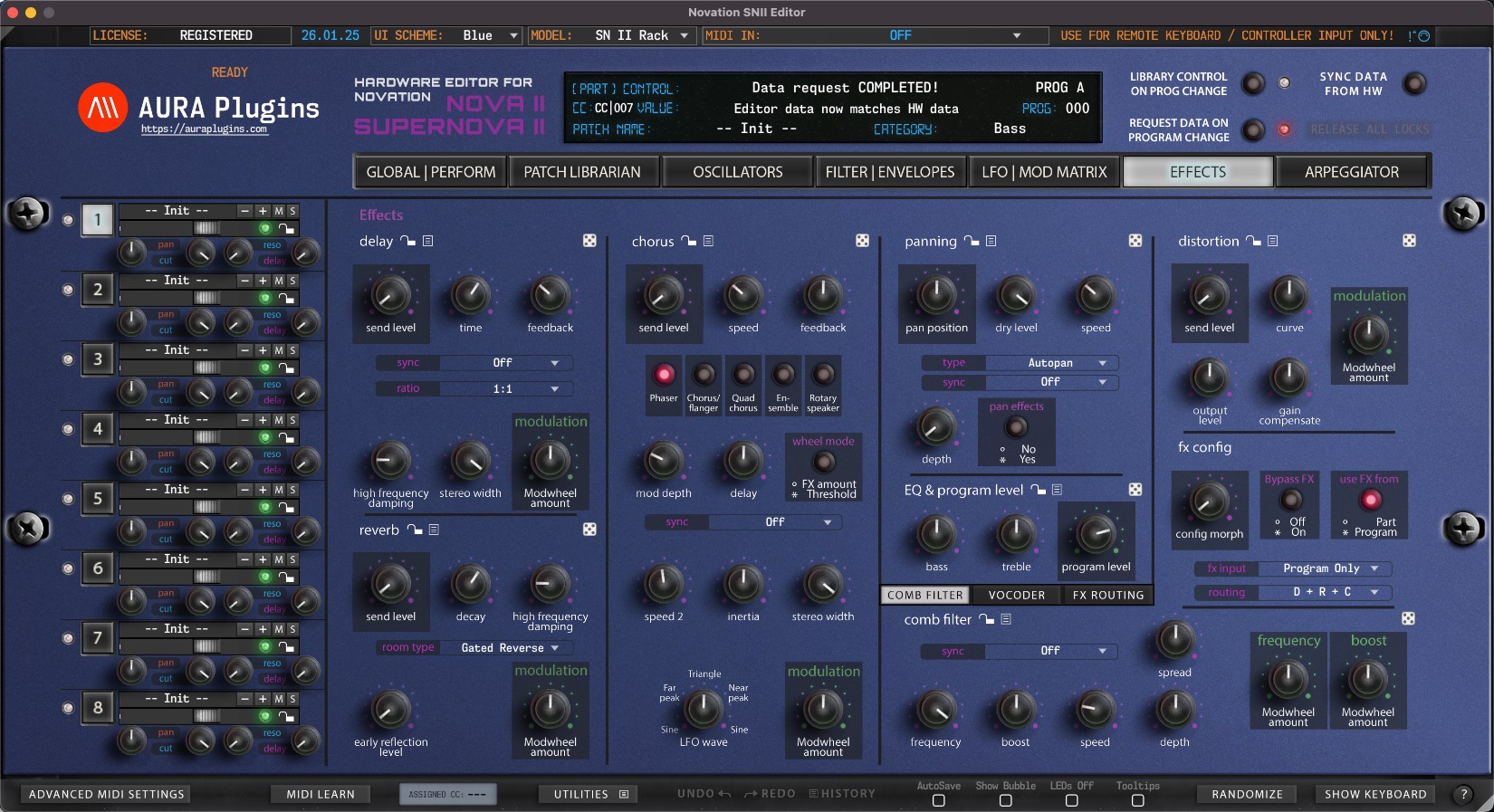 Novation SN II Editor & Librarian is designed to control Novation Nova II or Novation Supernova II hardware synthesizers right from your DAW.